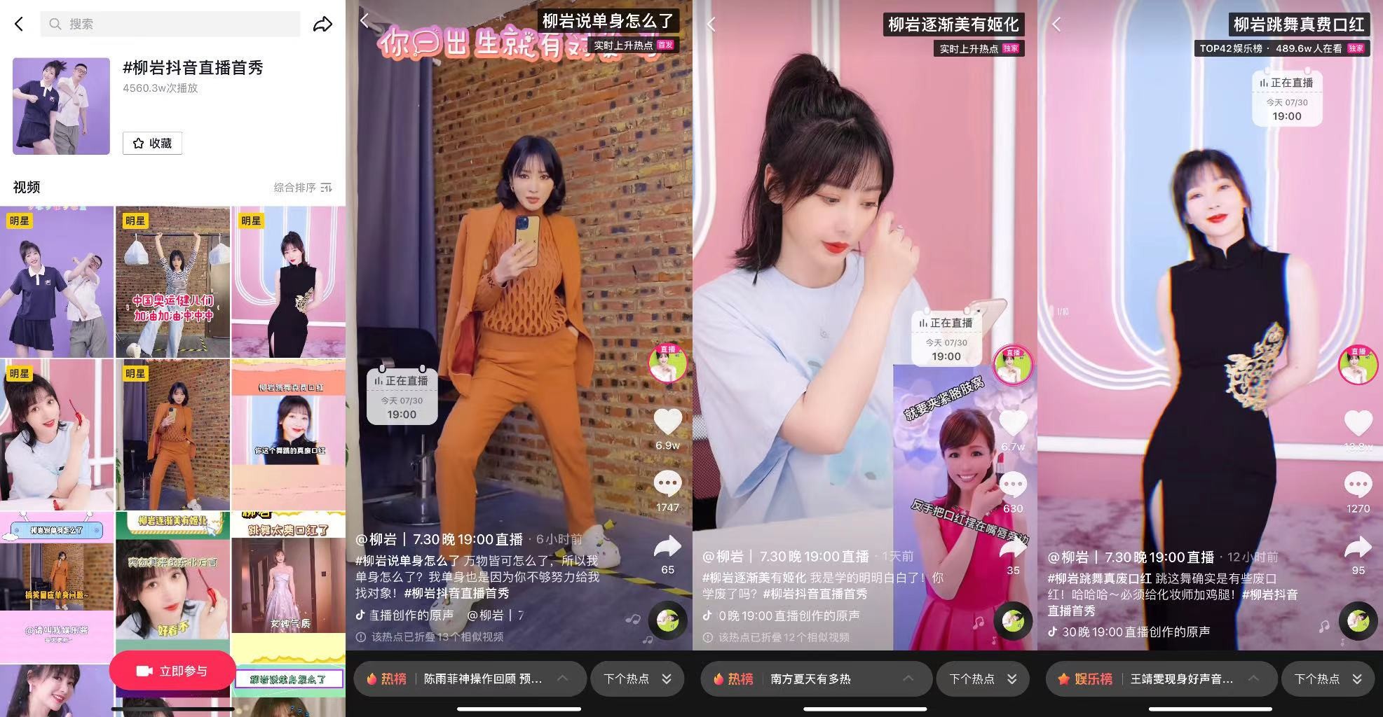 柳岩抖音直播带货首秀,平台赋能搭建兴趣场景