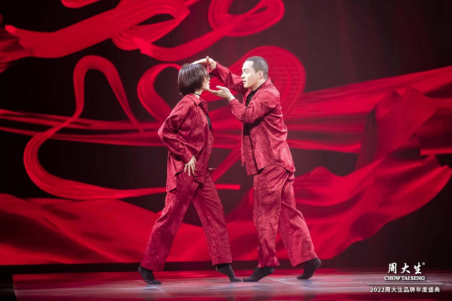 其中,“幸福花嫁”系列产品,特别邀请了明星舞者夫妻杨文韬&cici(张灿),在盛典现场演绎周大生“因爱而美,为爱而生”的动人爱情故事,用一场【囍】结连理的舞蹈演绎,再现经典之【囍】,走进一个“幸福花嫁”的爱情白首之约。