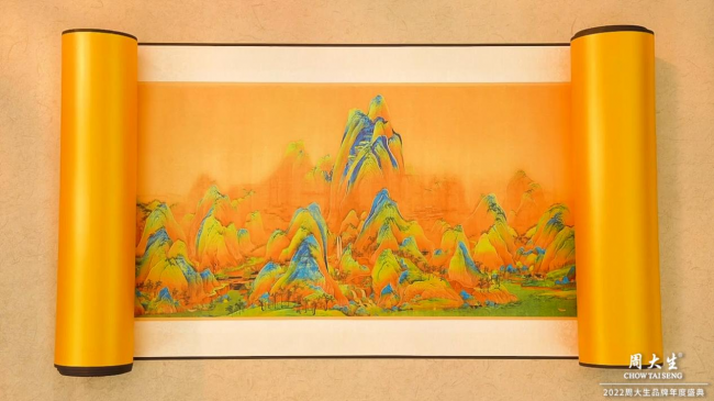 周大生与文化IP“国家宝藏”跨界联名后,一直致力于将国宝文化通过珠宝的设计与文化植入来体现中国文明之美与民族文化自信。其中,“千里江山”系列产品就是最受消费者喜爱的国家宝藏系列之一。此次盛典,周大生将在现场重磅展出,经千名匠人之手联合打造的《千里江山》1:1金箔画卷,通过古法黄金工艺结合新工艺,复刻还原历史传承名画。