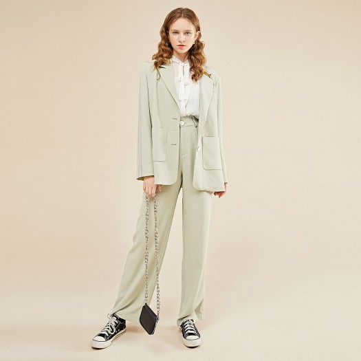 比如下面这套衣品天成的薄荷绿西装,这种自成一套的look可以说是懒人必备了,随便一套就能出门,高级又显气质!鲜嫩的亮色打破了西装套装的沉闷感,侧边还极富个性地加上了反光条元素,白天可女强人,下班约会逛街也很合适,夜幕降临你就是性感辣妹,一键自由切换。