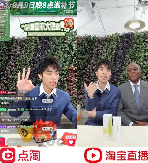 当晚走进直播间的还有南非驻华大使谢胜文,两位大使与带货主播们倾情互动,热情介绍来自本国的国货产品,并为直播间的粉丝朋友们送上了惊喜福利。